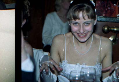 Ну и брак "художественный". Сколько раз я сам себе и знакомым твердил. "Человек в рост - проверь ноги, руки, голову (чтобы не обрезалось), чтобы не торчали из-за головы бяки всякие (хотя я в ЗАГСе нарочно прилепил жениху светящиеся "рожки"), чтобы со сторон не было обрезанных рук, голов, т.п. Людей, не вошедших в кадр". Вот. Все ошибки, все возможные их сочетания я совершил. Композиции в кадрах - вообще никакой. Куда я смотрел?! Типичный пример - портрет. Я обычно фокусируюсь центральным датчиком по лицу, потом кадрирую так, чтобы над головой не осталось пустое место и снимаю. Здесь же нееееет. "Как гвоздь в доску" Лицо в самой середине кадра. Куда я смотрел?!!! Ну ладно в обычной жизни, снимки, которые я делаю для себя, но это ж раз в жизни (надеюсь).