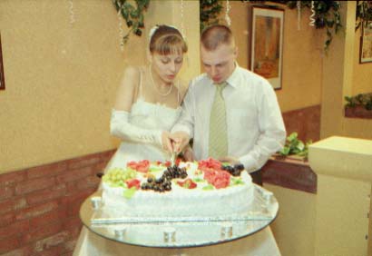 Общее резюме - я молодожёнам предлагал, что лучше будет нанять профи. По делу. Техническтй брак есть, брак - 1. Шевелёнка. Есть относительно нормальные кадры, которые я посоветую сделать 9х13 и "обложить" ими одну большую фотку. 2. Пересвет. Есть совсем убитые кадры, немного, 2-3 штуки. 3. Недоэкпонированные. Их побольше, около 10-15 штук, но вытянуть за исключением нескольких можно.
