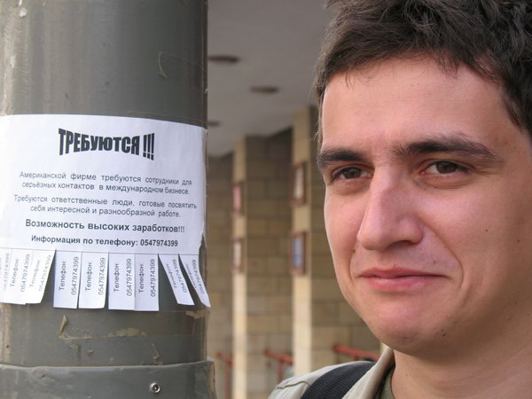 В тех городах Израиля, где мы были, много странных объявлений на русском языке. То ищут женщину для присмотра за 20-тью кошками и 2-мя собаками, то с текстом вроде: "Вам можно доверять? Тогда приходите к нам!" - и ни одного слова больше, или таких: