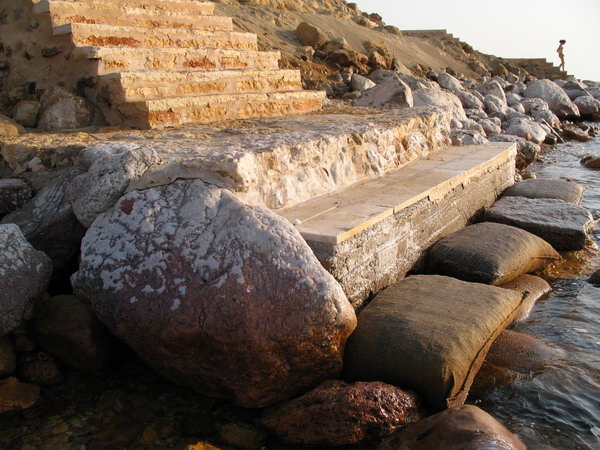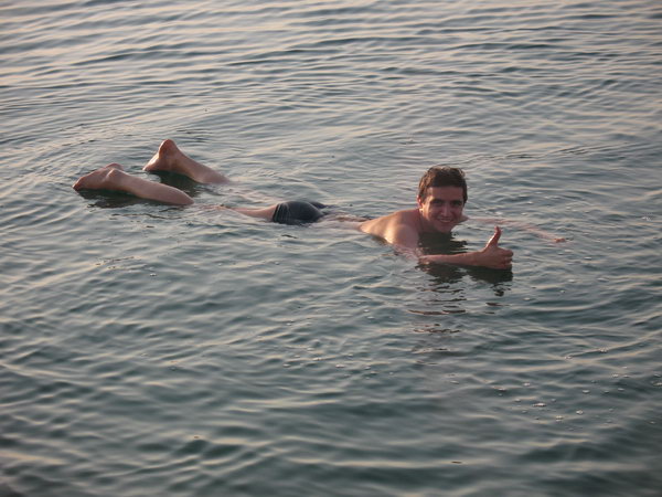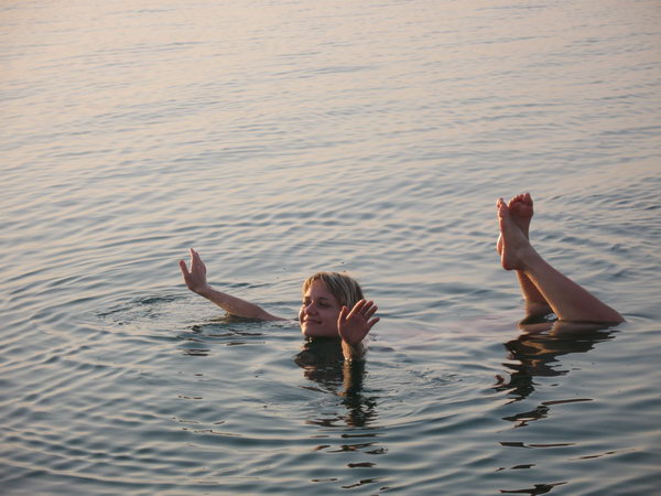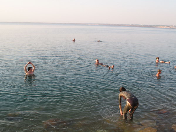 Мертвое море - классная штука. Вода густая, как будто масляная. Очень соленая - если в глаз попадает хотя бы одна маленькая капля, приходится бегом бежать в душ и вымывать её. Поэтому в этом море плавают аккуратно, не брызгаясь. Вообще "плавают" - это громко сказано, в воде просто сидят, как поплавки. Там даже повернуться со спины на живот иногда не получается с первого раза.